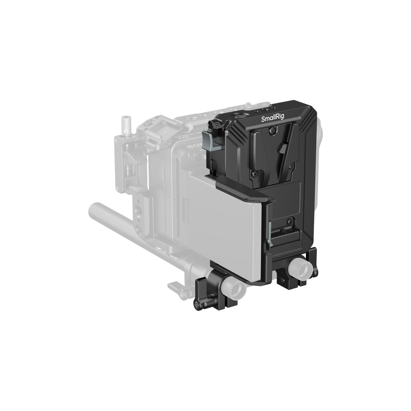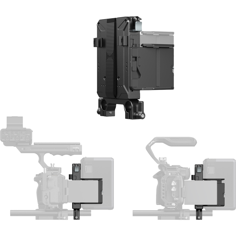 - Oferă o soluție de montare robustă și sigură pentru bateriile V-Mount.