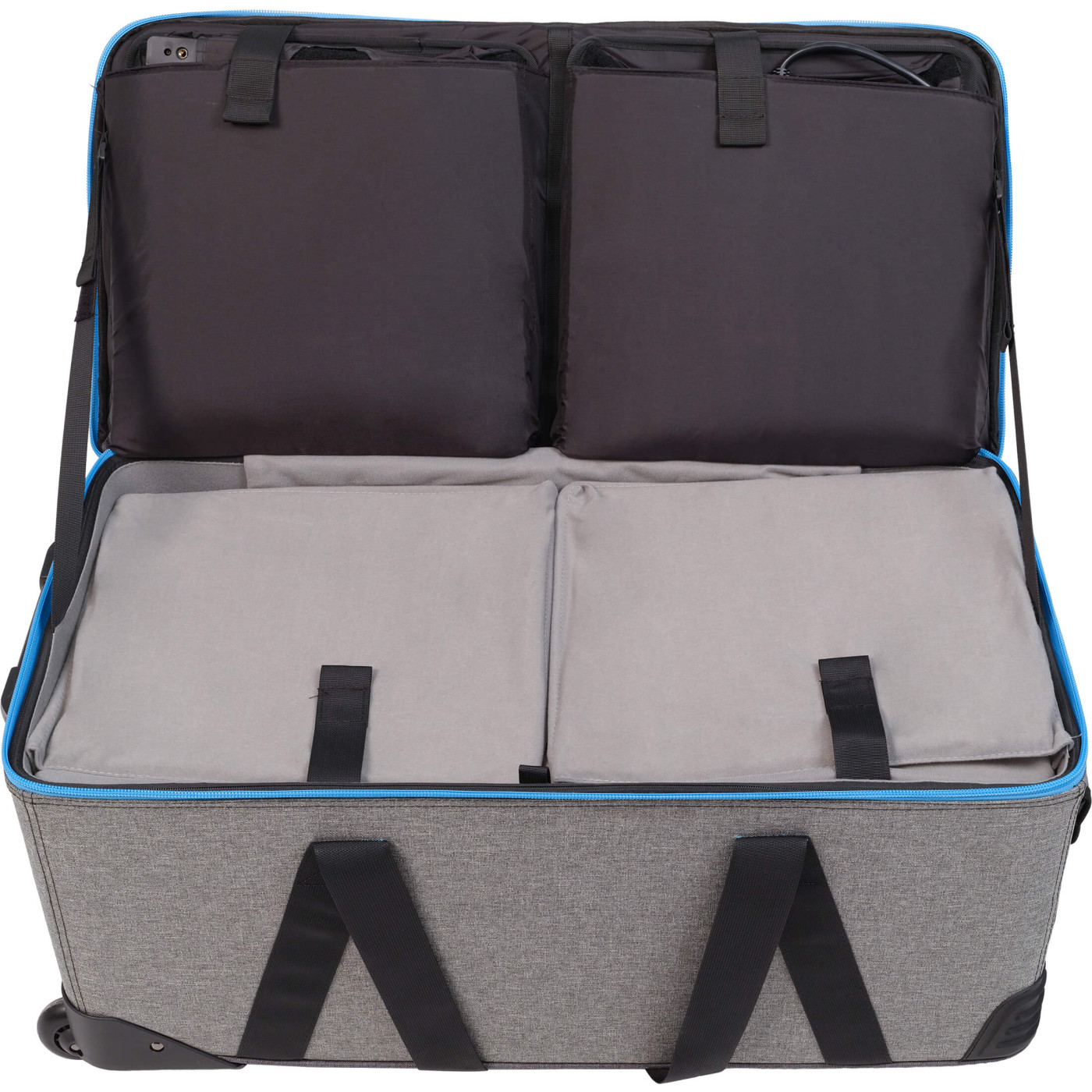 Transportul intregului sistem este facilitat de geanta troller profesionala inclusa. Construita din materiale durabile si dotata cu compartimente personalizate, geanta protejeaza panourile PavoSlim, proiectorul Forza, stativele si toate accesoriile (lentila Fresnel, softbox-uri, cabluri). Rotile cu rulare lina si manerul ergonomic fac din acest kit solutia ideala pentru deplasarile intre locatii.
